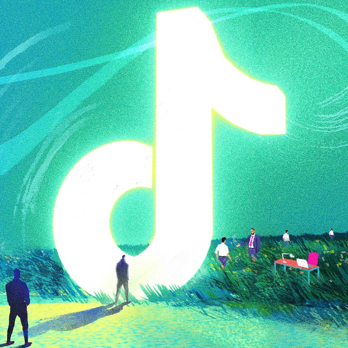 Self-directed speculative editorial illustration in response to an article by The Independent about how Tik Tok is helping the unemployed youth find creative jobs.