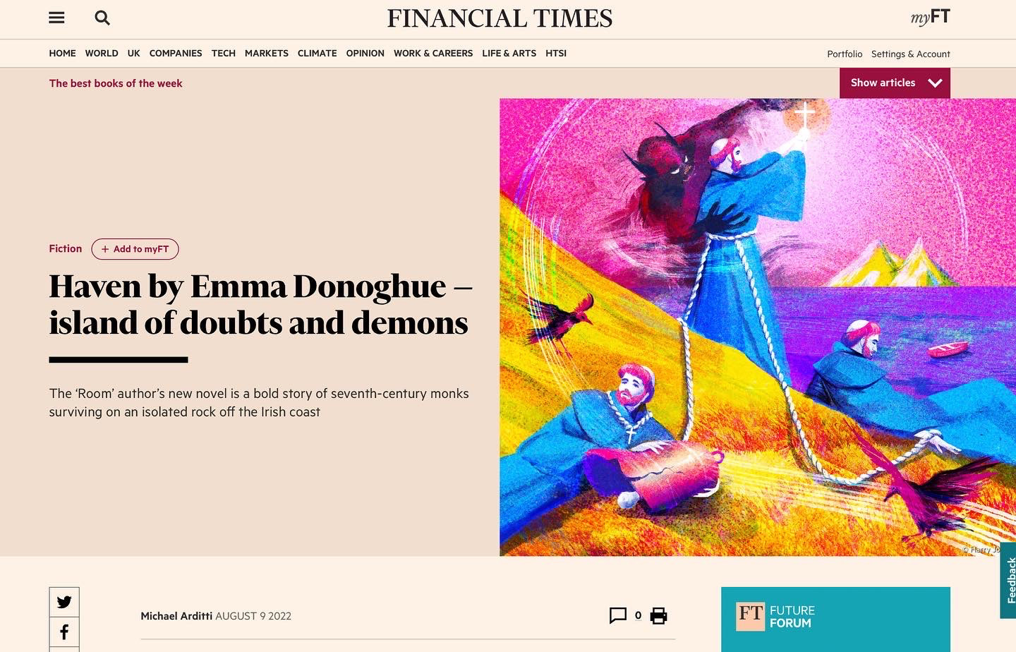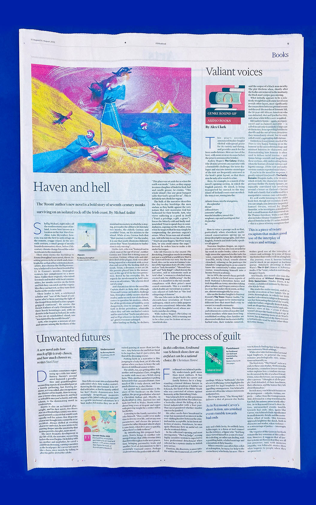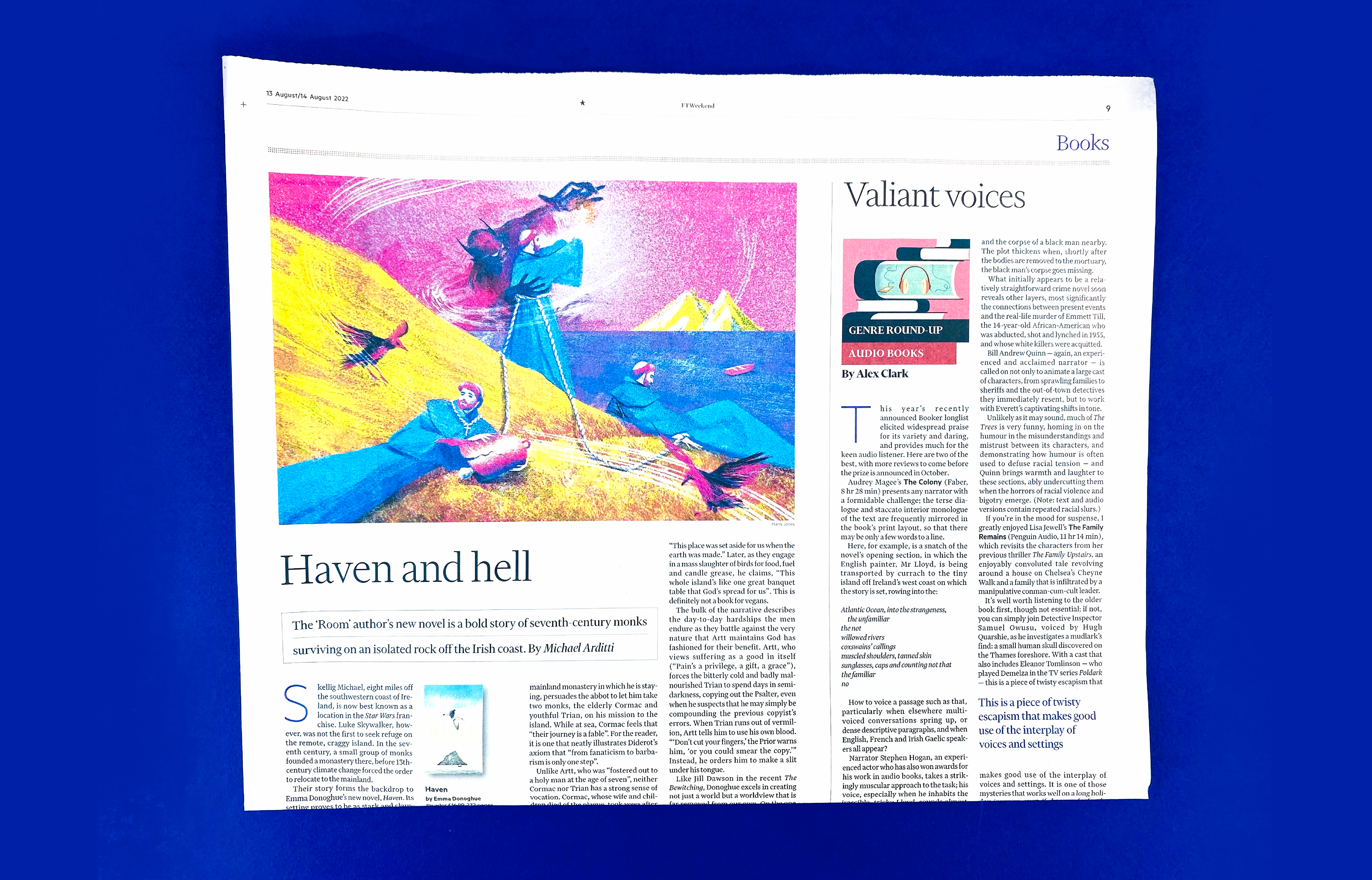 Lead fiction for the Financial Times 13th AugustĀ 2022 under the Life & Arts section. Article titled 'Haven - Island of Doubts and Demons'.